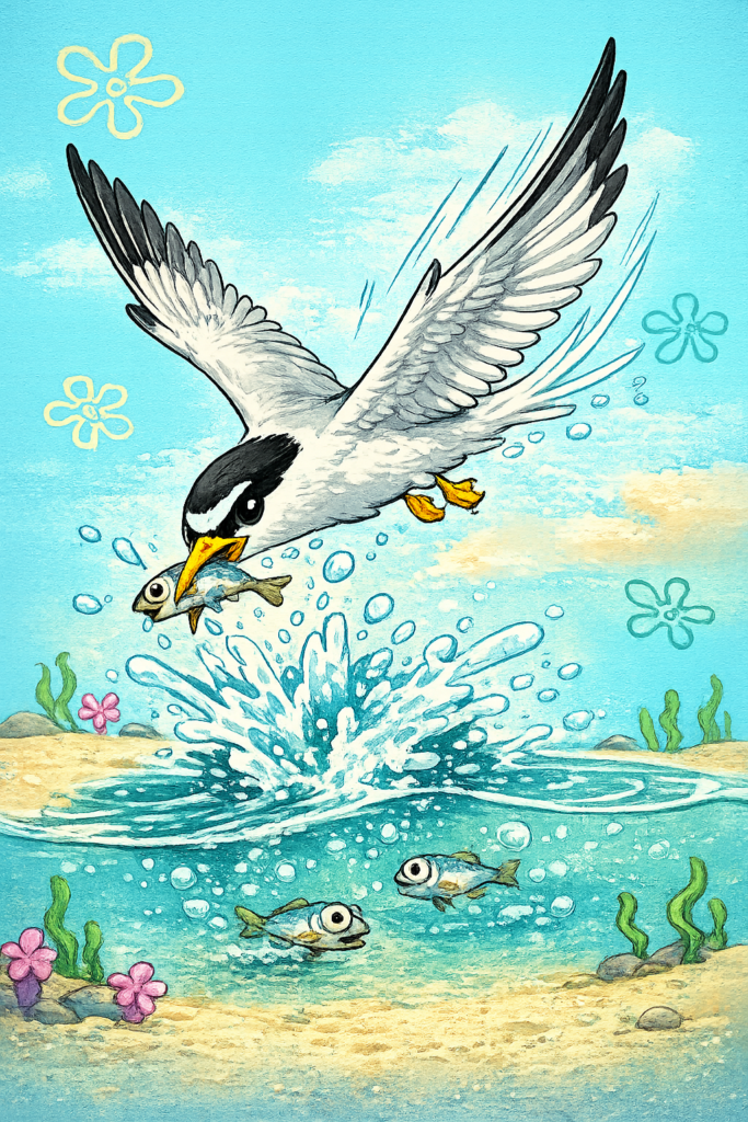 「よし、浮くぞ」ってした瞬間に、上からコアジサシが来る。