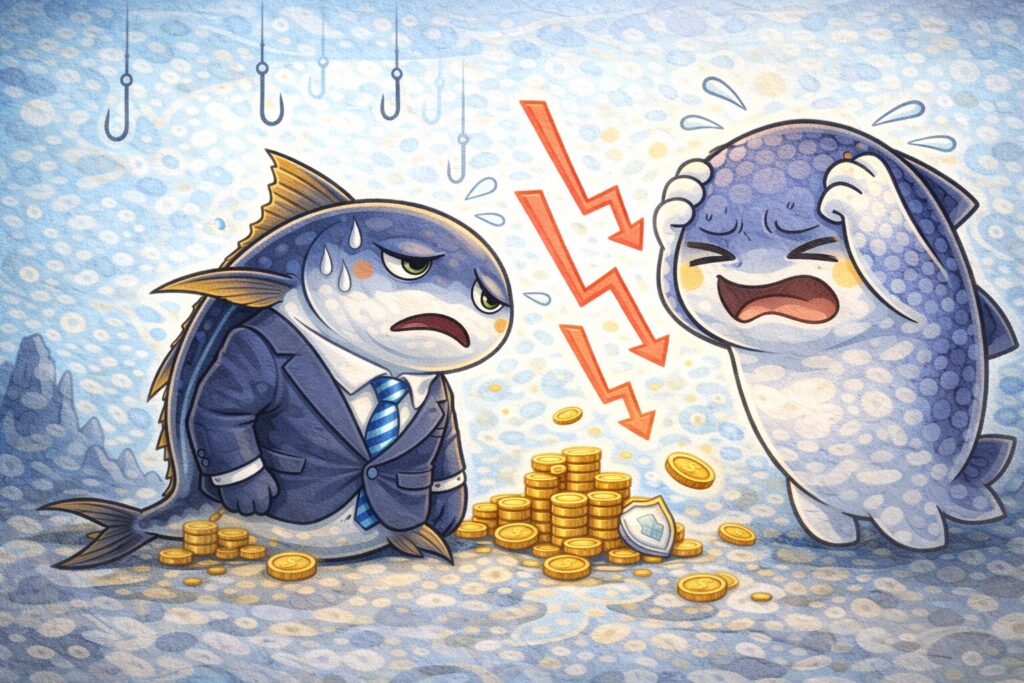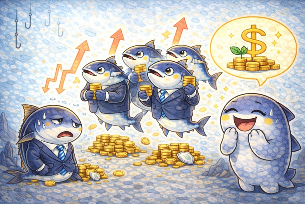 ジョージョーき魚のクロマグロくん、1匹のクロマグロくんにお金を預けておくと、どっかで事故ってそのお金が帰ってこないかもしれないし、だんだんお金を減らしていく(成績の悪い)クロマグロくんかもしれない。