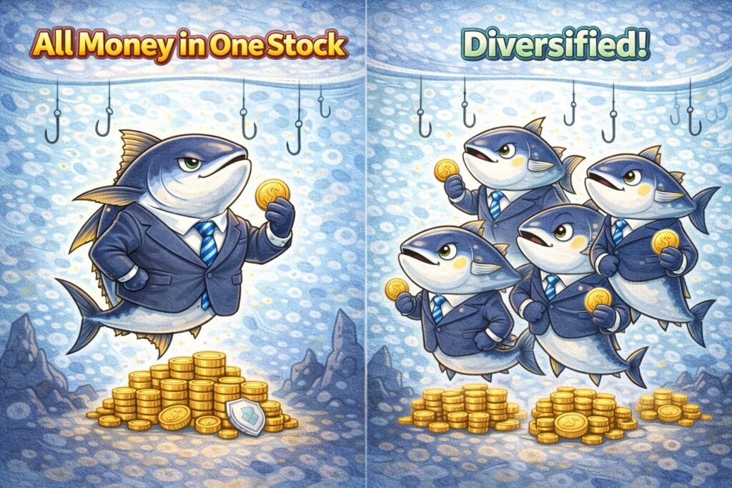 だからできるだけ多くのクロマグロくんにお金を預けることで、1匹がダメでもそんなにダメージは少ない。このように「リスク分散」することが株式投資では重要な作戦です。負けない投資の大原則です。