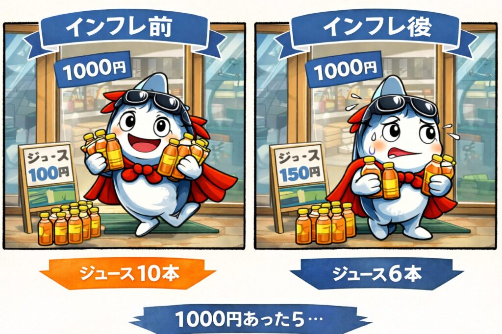 インフレ=同じお金で買える量が減ること。