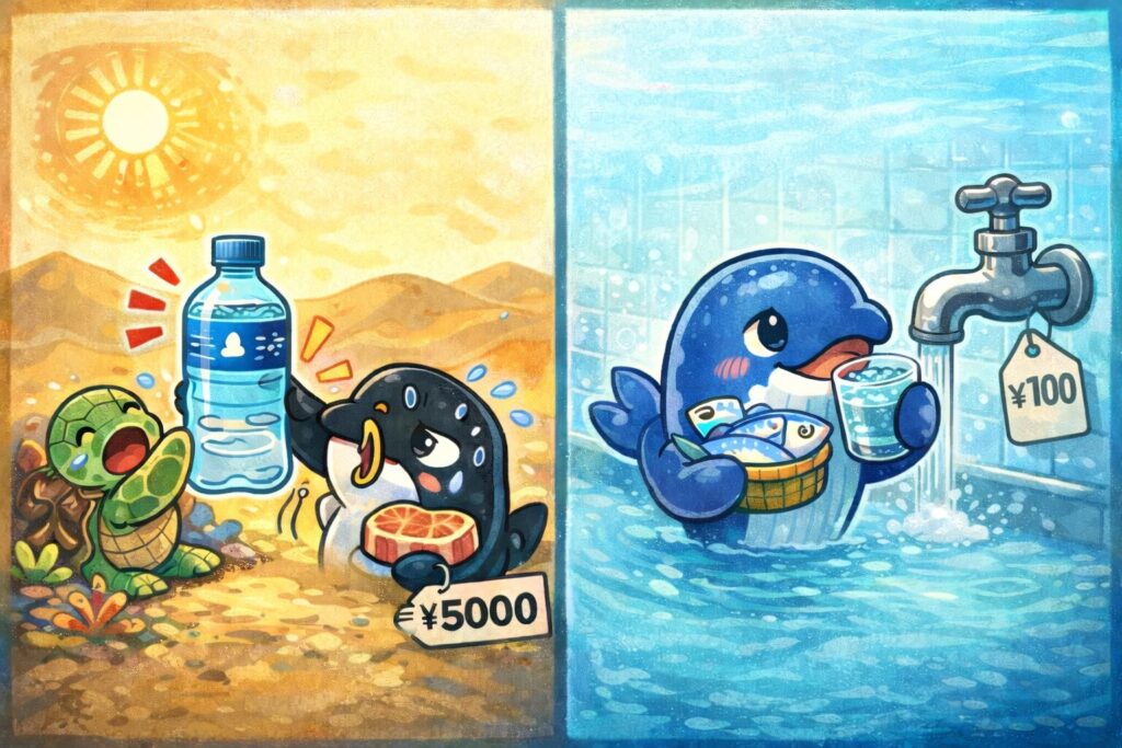 同じ“水”でも 砂漠の水は命の価値、家の蛇口の水は普通、みたいに変わります。